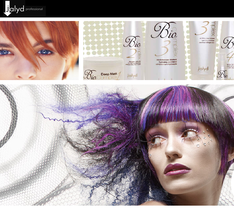 "Jalyd professional" : The hairdresser line which includes specific products for dry and colored hair, against dandruff or greasy hair, for frequent shampoos, finishing, and highly professional technical works like coloring, permanent and hair stretching. |