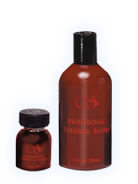 Professional Theatrical blood was developed for a realistic theatrical appearance both for on stage and film. It has a light texture with a bright red color like blood from an artery, and appears exceptionally realistic in use for simulated flesh wounds.