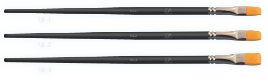 Flexible synthetic fiber flat brushes with a slightly rounded tip, which makes them ideal for application of cream foundation, concealer, ESB or lip color. FLB-1, FLB-2, FLB-3