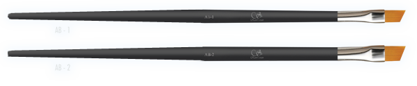 Taklon brush cut at a perfect angle, providing ultimate control for creating sharp precise lines. AB-1, AB-2